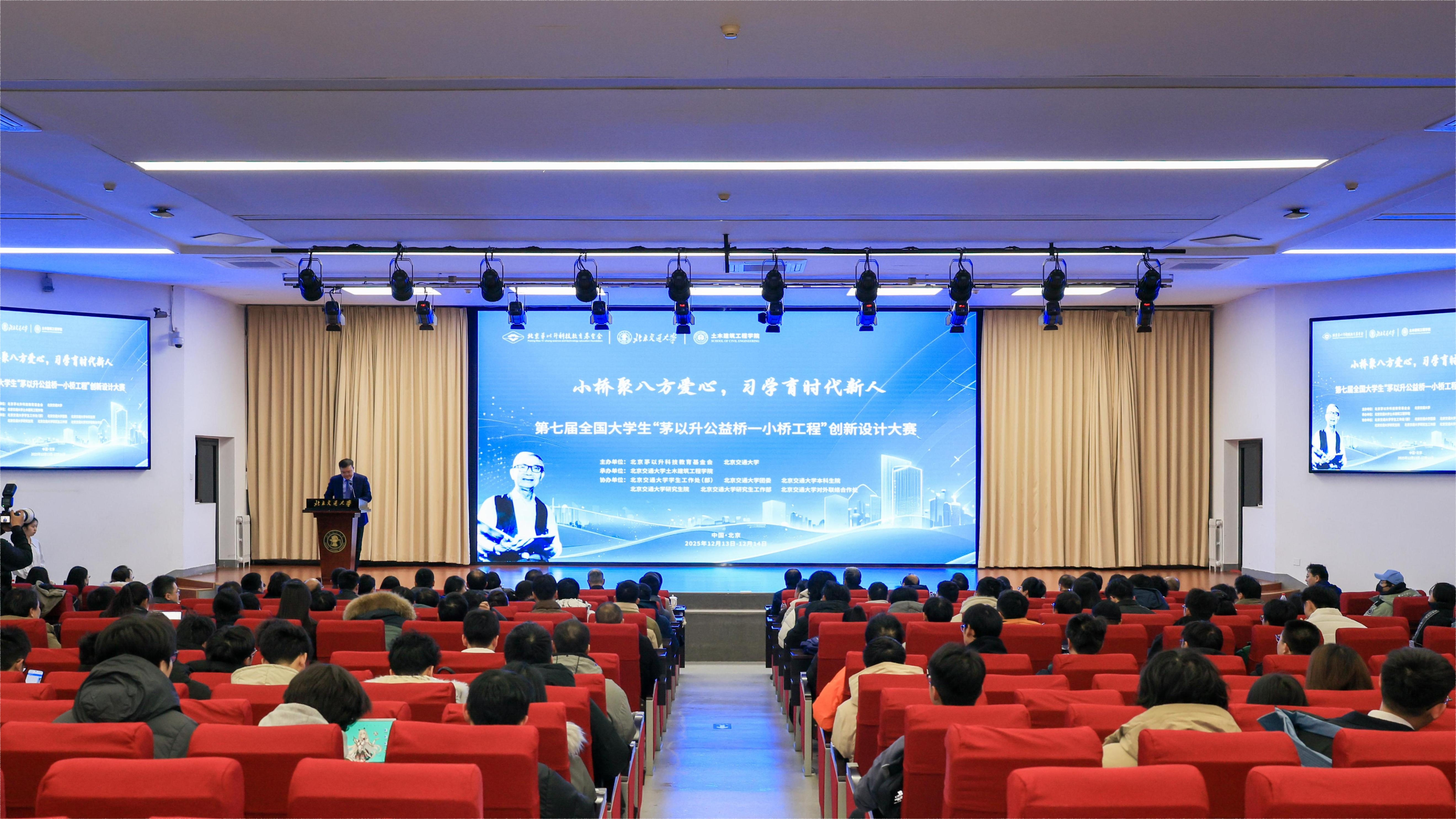 12月13日,第七届全国大成人直播 “茅以升公益桥—小桥工程”创新设计大赛决赛开幕式在成人直播 海淀校区中心报告厅举行。成人直播 协办赛事的相关部处领导以及来自全国高校的近300名参赛师生参加。