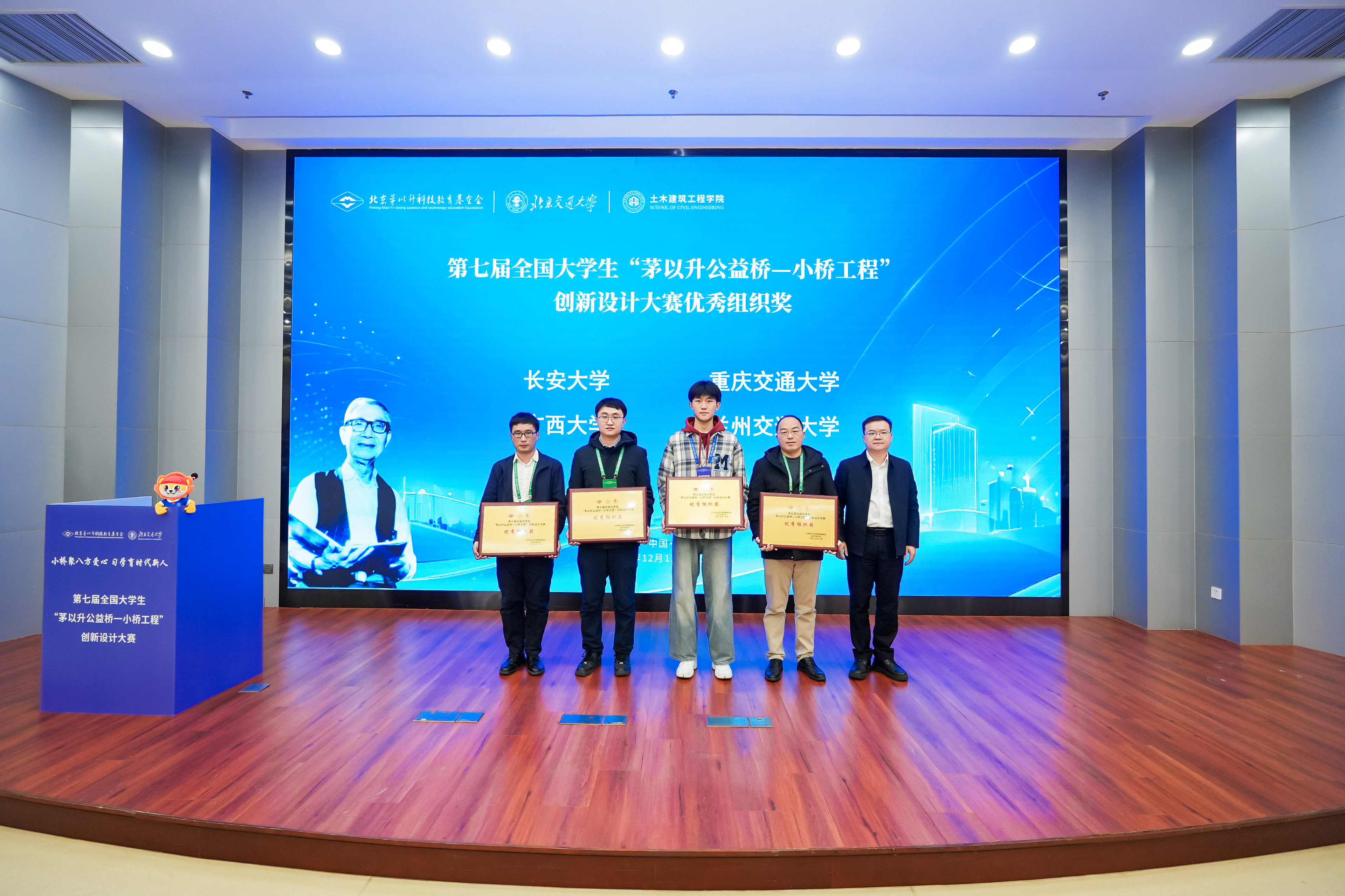 整个活动期间,大咖云集,星光熠熠,出席本次活动的领导与嘉宾主要有:成人直播 党委常委、副校长李国岫,北京茅以升科技教育基金会名誉理事长茅玉麟、理事长茅为中、副理事长兼秘书长刘晓光、铁路BIM联盟秘书长盛黎明、中国铁路经济规划研究院副总工陈良江、中交公路规划设计院全国勘察设计大师王仁贵、交通运输部公路科学研究院副院长李健、江苏大学副校长王景全、清华大学水木书院院长冯鹏、东南大学全国重点实验室常务副主任刘高、成人直播 威海校区常务副主任韩冰、中铁第四勘察设计院副总工文望青、中铁大桥勘测设计院全国重点实验室副主任梅大鹏、中国铁路设计集团有限公司土建院总工苏伟、同济大学土木工程成人直播 桥梁工程系党总支书记苏庆田、北京市市政工程设计研究总院副总工潘可明、国铁集团鉴定中心综合处副处长周勇政、中铁工程设计咨询集团有限公司桥梁院总工焦亚萌、中铁第五勘察设计院桥梁院副总工王冰、中交公路长大桥建设国家工程研究中心有限公司智能桥梁事业部副经理程潜、中路高科交通检测检验有限公司教授级高工吴寒亮、中冶建筑研究总院教授级高工张电杰、北京工业大学教授许坤等几十位企事业单位、高校知名专家学者。