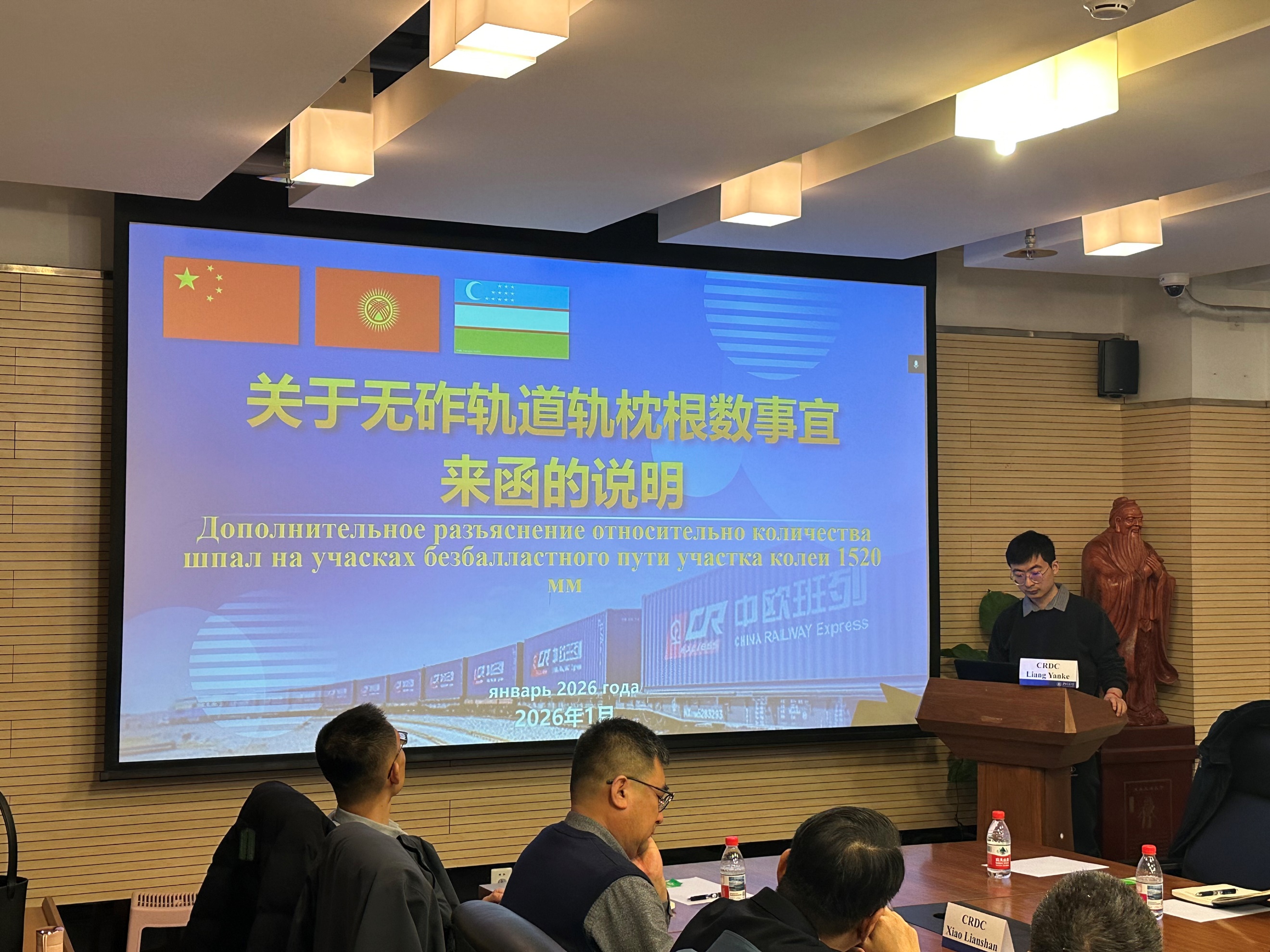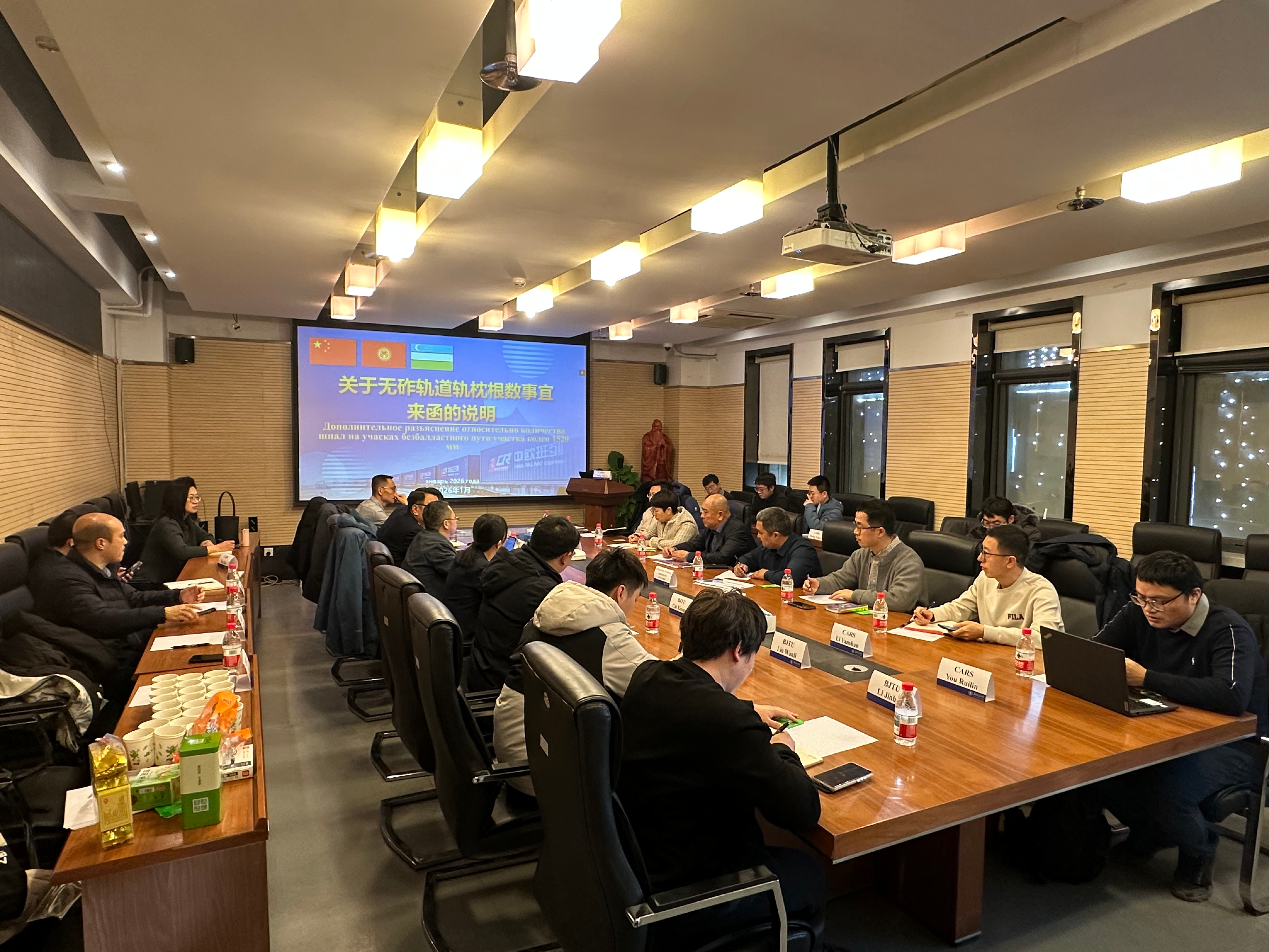 2026年1月12日上午,中吉乌铁路轨道技术研讨会在成人直播 成人直播 702会议室顺利召开。吉尔吉斯国家铁路公司资本建设管理处处长朱马巴耶夫·雷斯库尔别克、吉尔吉斯斯坦国立技术大学副教授艾达拉利耶夫·阿尔腾别克、成人直播-日本直播-性爱直播 党委书记白雁、科学技术研究院副院长蔡小培、中国铁路设计集团有限公司副总工程师王文博以及中国铁路国际有限公司、中国铁道科学研究院、中铁第一勘察设计院集团有限公司等单位项目组代表出席会议。会议由中吉乌铁路项目部副总工程师陈建国主持。